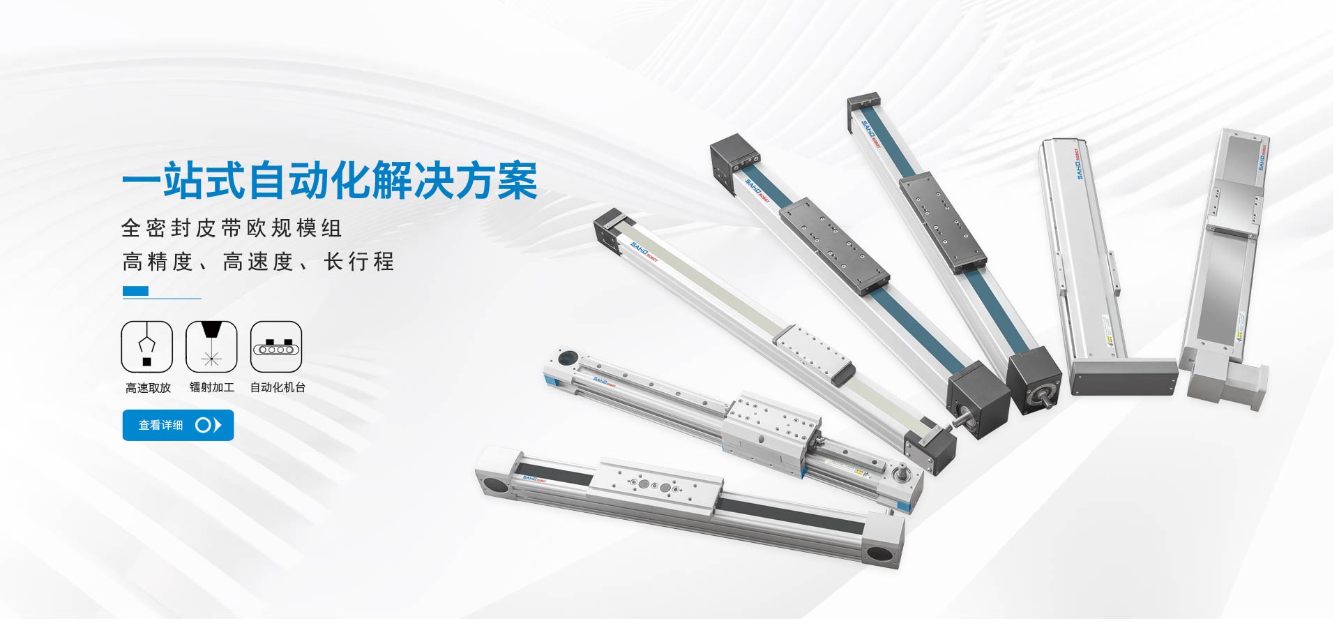 具体细分产品为:单轴机械手臂、丝杆电动滑台、皮带式电动模组、电动缸、全密封防尘丝杆滑台、全密封无尘皮带滑台、内嵌式模组、齿条式滑台、直线电机模组、超长行程滑台、直角坐标机器人、KK模组、智能仓储用滑台、旋转R轴平台、多轴自由组合,及含系统集成的智能机械手为一体的自动化机台设备类。